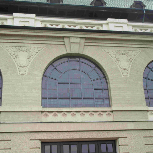 Motive über Rundbogenfenster (unten links), Balkon (unten rechts)